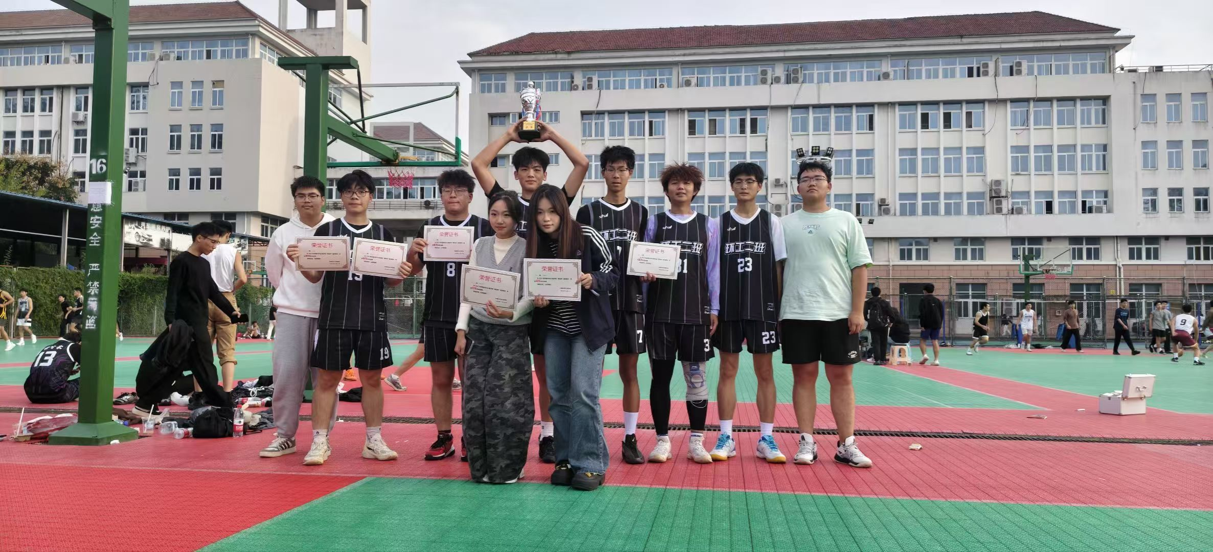 比赛吸引了各班级踊跃参与。经过小组赛、半决赛的激烈角逐,水质2501班、环工2502班、环工2503班、水质2502班晋级四强。决赛当日,冠亚军争夺战在水质2501班与环工2502班之间展开,队员们默契配合、攻防兼备,运球、传球、投篮等精彩表现赢得现场阵阵欢呼;季军赛因水质2502班队员意外受伤弃赛,环工2503班按规则获季军。最终,水质2501班凭借顽强斗志和出色战术战胜环工2502班夺冠,环工2502班获亚军。