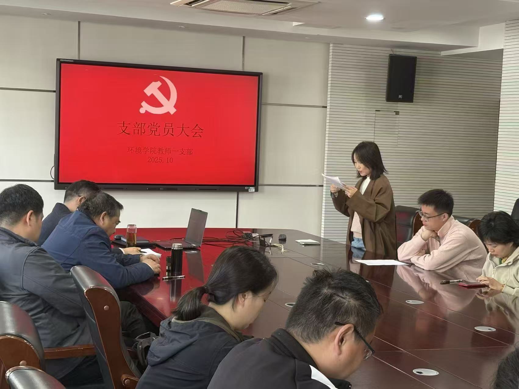 10月31日,环境科学与工程学院教师第一党支部召开党员大会,讨论发展江苏省卓越博士后周冉冉同志为中共预备党员事宜。会议由党支部书记何益得主持,学院党委书记周华出席会议,教师第一党支部全体党员参加了会议。